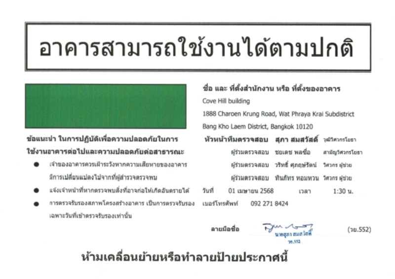 In addition, the Citadines serviced apartments operated by BC—including Citadines Sukhumvit 8, Citadines Sukhumvit 11, and Citadines Sukhumvit 16—continue to welcome guests and residents with complete assurance of structural soundness. Cove Hill Charoenkrung, BC’s uniquely positioned waterfront hospitality project, also remains fully operational with no impact reported.